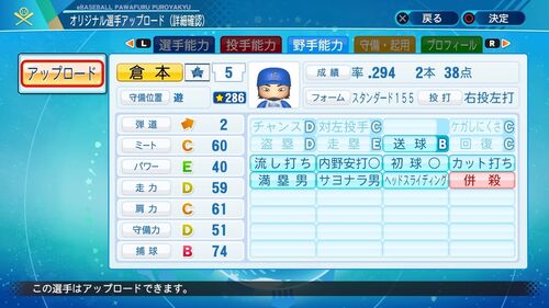 倉本寿彦(横浜DeNAベイスターズ) 横浜高等学校→創価大学→日本新薬→横浜DeNAベイスターズ(2015-) 見せろ男意気 パワナンバー 10000 00173 65022 打率.294 1本 38打点 2016年の倉本寿彦を作成。 前年は一本足打法だったが、この年からつま先をレフト方向に向け…