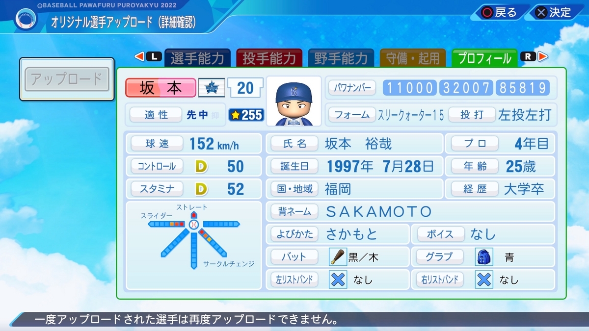 坂本裕哉選手を作成。